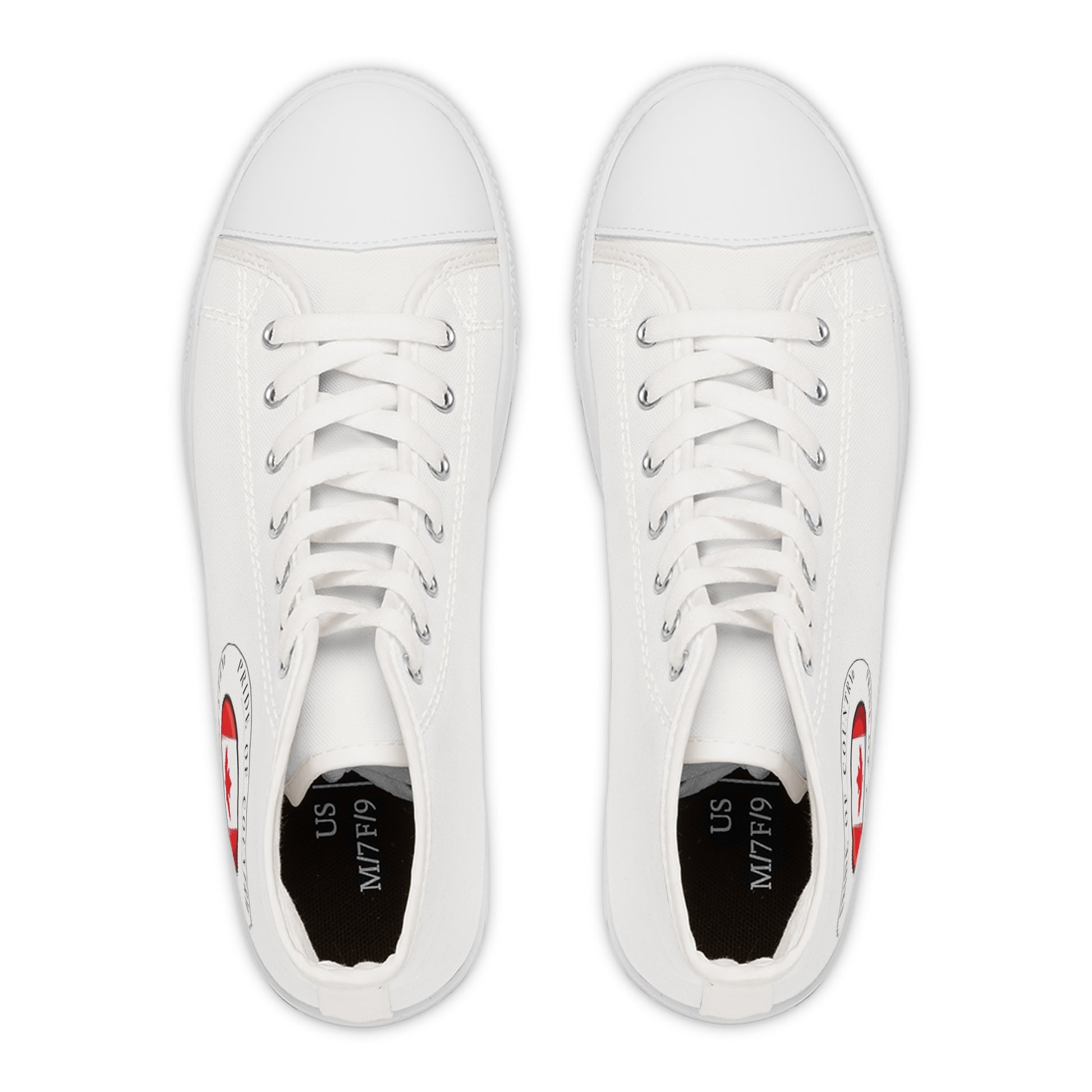 Made with breathable polyester canvas and featuring hi-poly deodorant memory foam insoles, these women's high top sneakers bear all the marks of an awesome shoe. Choose between black or white sole and laces, and enjoy the silver metal eyelets along with the lace-up closure. Add your designs and bring a bespoke staple to life.